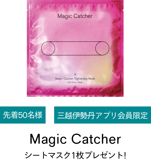 期間中、店頭にてSISI商品を税込合計6,000円以上お買い上げの方先着【50名様】に、会場にて「三越伊勢丹アプリ」内のクーポン画面をご提示いただくとSISIのシートマスク「マジックキャッチャータイトニングマスク」(30mL)1枚(税込1,150円相当)をプレゼントいたします。